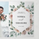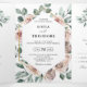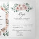 Elegante y moderna invitación de boda floral de mediados de verano que presenta un ramo de rosas de acuarela peonías en tonos de rosa polvoriento, rosa polvoriento, malva, salvia con hojas botánicas verdes exuberantes, eucalipto y marco dorado. Por favor, busque más diseños y variaciones coincidentes en mi tienda "blissweddingpaperie". Y no dude en contactarme para una mayor personalización o artículos coincidentes.
