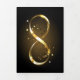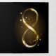 Oro, símbolo de infinito de joyas con estrellas doradas sobre fondo negro. Diseño con estrella dorada.