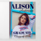 Tipografía atrevida azul de la marina Clase de la fiesta de graduación de 2025 triple invitación de foto. La portada de este diseño moderno incluye una foto y el nombre del graduado. Los paneles interior primero y último contienen más fotos, mientras que el panel central interior incluye todos los detalles del fiesta, un tapón de graduación y un marco azul delgado. En la solapa externa se muestra el texto "Clase de 2025" y en la parte posterior el texto "Grado de felicitaciones" con un tope de graduación. Fotos de Ayo Ogunseinde en Unsplash