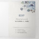 La invitación de boda de invierno floral elegante presenta un ramo de flores de acuarela gris elegante y azul helado con vegetación de tonos helados. Por favor, póngase en contacto conmigo para cualquier ayuda en la personalización o si necesita cualquier otro producto con este diseño.