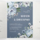 Elegante invitación de boda de invierno floral presenta un elegante ramo de flores de acuarela gris y azul hielo con verdor helado. Por favor, contacte conmigo para cualquier ayuda en personalización o si necesita cualquier otro producto con este diseño.