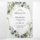 La invitación de boda moderna y elegante de primavera / mediados de verano presenta un ramo de suaves verdes acuarela, hojas verdes exuberantes / hojas botánicas / eucalipto / suculentas y marco geométrico dorado. Por favor, busque más diseños y variaciones coincidentes en mi tienda "blissweddingpaperie". Y no dude en contactarme para una mayor personalización o artículos coincidentes.