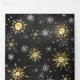 Anuncio Tríptico Xmas copos de nieve dorados sobre fondo negro