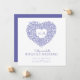 Tarjeta de anuncio de cancelación de asistencia en persona / reducción de boda de ramo de tulipanes en forma de corazón con tinta en mano de color púrpura azul. Esta tarjeta simple pero elegante. Ideal para usar como tarjeta de información de boda para informar a sus invitados de una boda o evento reducido, o reprogramado a un tamaño diferente de evento, debido a enfermedad o circunstancias imprevistas. Tulipanes florales en forma de corazón rodeando el diseño de las iniciales de su monograma. En elegante púrpura azul y blanco simple. Otras opciones de color y artículos coincidentes están disponibles. Diseño original de Sarah Trett para www.mylittleedenweddings.com