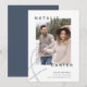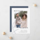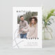 Comparte la noticia de tu compromiso con estas elegantes tarjetas de anuncio modernas que presentan una foto vertical o orientada al retrato con sus nombres superpuestos en cada esquina, y un ampersand dibujado a mano de gran tamaño. Personalice con tres líneas de texto personalizado en la parte inferior para obtener detalles adicionales o el sitio web de su boda.