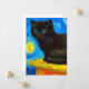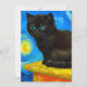 Tarjeta con un gato Van Gogh al estilo Starry Night! Un gatito negro mullido se perfila sobre una mesa contra un cielo azul nocturno y una luna amarilla. ¡Un regalo perfecto para los amantes del gato y los coleccionistas holandeses de arte!