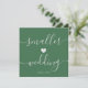 Esta es una sencilla tarjeta de anuncio de boda más pequeña con escritura en verde cazador y gris para informar a sus invitados que han decidido reducir el tamaño de su boda, tener una boda más pequeña, boda micro, boda íntima debido a ciertas circunstancias.