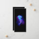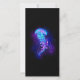 Gran medusa azul, de dibujo artístico, brillante y brillante, con largos tentáculos sobre fondo negro con bioluminiscencia violeta. Luminosas medusas.