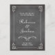 Anuncia tu compromiso de boda con estas tarjetas postales chic e inesperadas para guardar la fecha. El diseño presenta un fondo de pizarra con texto en estilo de letra de tiza. Un rollo de estilo vintage adorna elegantemente cada esquina. Simplemente reemplace el texto de muestra con su información. Incluya información adicional o un mensaje personal en el reverso. Salve el medio ambiente y el franqueo utilizando estas tarjetas postales. Estas tarjetas postales de "Save The Date" de estilo pizarra corresponden a las invitaciones de boda de pizarra gris de estilo vintage romántico.