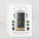 Let your family and friends know that you've moved to your new home with our beautiful and elegant new home announcement card. Our design features our own hand-painted watercolor black front door. Accented with touches of gold on the mailbox slot, door handle and door kickplate. Modern black outdoor wall lights and a burlap welcome doormat complete this charming new home design. Personalize with your new home address number on the front door and add your name and address information. The reverse side features a bold modern black and white stripe pattern. All illustrations are hand-painted original artwork by Moodthology.