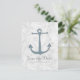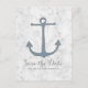 Perfecto para un boda de temática náutica es esta tarjeta Rustic Anchor Save the Date Postcard con un ancla azul sobre un fondo de mármol gris claro. Este clásico y simple, guardar el anuncio de fecha es fácil de personalizar con los detalles de su boda. Para obtener más opciones de personalización, haga clic en Personalizar.