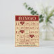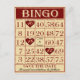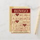 Estilo vintage guardar el anuncio de fecha con un divertido tema de Bingo. Las fechas de los eventos se resaltan con el corazón y las parejas nombran en el medio de la carta. La parte posterior de la postal también anuncia la fecha y el lugar de la contratación.
