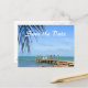 Dos tumbonas en un entorno tropical cuentan la historia de la postal de la boda de destino. Personalizar con su propio texto en la parte delantera o posterior.