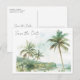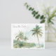 Anuncie su celebración costera con elegancia y facilidad usando nuestra Watercolor Beach Wedding Salve la Postales de la Fecha. Esta postal presenta suaves tonos de agua en frondosos verdes y neutrales arenosos que capturan perfectamente la serena belleza de un boda de playa. El diseño de la parte delantera resalta una hermosa ubicación en una playa tropical, mientras que la parte trasera ofrece espacio para todos los detalles bodas. Sin necesidad de sobres, esta postal hace que sea simple y elegante correr la voz de tu día especial.