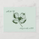 Para su boda, esta colección de Dogwood Blossom incluye esta postal Save the Date que incluye un dibujo de una flor perfecta de Dogwood en verde oscuro sobre un fondo pálido y de menta. Al revés, una plantilla para su invitación con espacio para una nota personal.