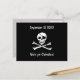 El cráneo clásico de Jolly Roger y los huesos cruzados de blanco sobre un fondo negro. Inserte nuestra propia "charla pirata" para que se ajuste a su ocasión tecleando en las cajas bajo "personalizarla", adelante y atrás.