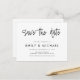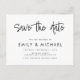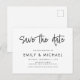 Un sencillo y elegante presupuesto ahorra la postal de invitación de boda de fecha. Personalice este minimalista diseño de invitación a la boda en blanco y negro para tener sus datos personales y su mensaje.