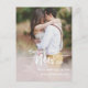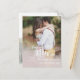 Una fotografía simple con un elegante y moderno guión que anuncia su boda 'Cambio de fecha' La foto se cambia fácilmente a su propia foto personal. La foto de la parte de atrás aparecerá descolorida, pero también se puede eliminar si lo desea. Un diseño de boda personalizado.