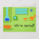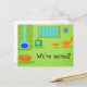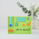 Esta postal de cambio retro moderno de dirección de mediados del siglo personalizable le hará romper sus hebras de perlas para hacer las tareas más mundanas. El diseño frontal tiene un fondo verde limón con la silueta azul, una chimenea de conos, un televisor de tubo clásico y verde (con orejas de conejo), una tumbona y un taburete naranja, un reloj azul con estampida y un otomano naranja con patas cónicas. Simplemente haga clic en el icono "Personalizar" para reemplazar el texto existente con el suyo propio. ¡Es una auténtica maravilla para una persona moderna y experta en informática como tú! Hogar, dulce hogar, ¡acaba de ser mucho más dulce!