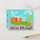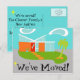 Esta postal de cambio moderno de dirección de mediados del siglo Personalizable le hará desear sacar la alfombra de BIENVENIDA y sentirse como en casa. El diseño artístico minimalista de los años 60 se compone de una elegante casa de piedra naranja y de cristal acuático sobre un frondoso césped verde en forma de boomerang. El césped forma un oasis en medio de su entorno gris y de hormigón. Una palmera verde se balancea en la brisa. Cuatro escalones de piedras naranjas conducen a la puerta trasera, roja y retro, con tres cristaleras rectangulares. A la izquierda de la puerta, una maceta de flores turquesa acoge una planta tropical verde. La casa tiene un techo blanco inclinado en forma de V que apunta hacia dos nubes blancas con forma de riñón. El cielo es una sombra positiva de agua. La parte delantera de esta carta dice: "¡Nos hemos mudado!" Personalice el lado opuesto con su nueva información de contacto. ¡Nadie querrá tirar piedras de esta moderna casa de cristal! ¡Compra este producto kitschy de la edad espacial y sé el gato más genial de tu bloque!