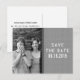 Geek y divertido código binario Foto Guardar la postal de fecha en gris con un simple fondo de código binario y plantilla de foto. Este diseño anticuado es perfecto para la pareja de nerds que anuncia su boda. Fácil de personalizar, simplemente reemplace la foto por una de las suyas y añada los detalles de su boda. Haga clic en "Personalizar" para encontrar más opciones de personalización.