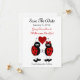 Estos lindos anuncios de Aviso de Fecha de boda tienen dos mariquitas de dibujos animados tomadas de la mano, con un gran corazón rojo entre ellas. El texto negro y rojo es totalmente personalizable para adaptarse a tus necesidades. ¡Qué manera divertida de anunciar tus planes de boda.