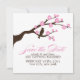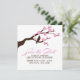 Anuncios de Save the Date de boda con una hermosa ilustración de un pájaro marrón posado en un cerezo.