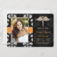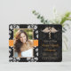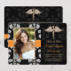 Añada su foto o foto favorita a estos anuncios de graduación de la escuela de veterinaria damasquis floral, blanca y negra, e invitaciones a graduación veterinaria con una cutis caduceus dorada y naranja impreso cosida de listón para el veterinario graduado. Personalizar que diga lo que quiera en la parte trasera y delante de estos anuncios de graduación de odontología e invitaciones. Pintura © Chrissy H. Studios, LLC. Todos Los Derechos Reservados.