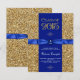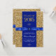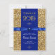 invitación de graduación de bonito azul real y purpurina de oro. Esta hermosa invitación de graduación en azul y oro se personaliza fácilmente con los detalles de tu evento en el estilo de letra y color, y la redacción de tu elección. También puedes mover la cinta y el ornamento giratorio o borrarlos en esta elegante invitación de graduación de azul y oro.