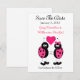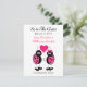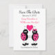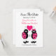 Estos lindos anuncios de Save the Date de boda tienen dos mariquitas de dibujos animados tomados de la mano, con un gran corazón rosa entre ellos. El texto negro y rosa es totalmente personalizable para adaptarse a tus necesidades. ¡Qué forma divertida de anunciar tus planes de boda.