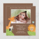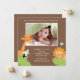 Anuncios adorables de natalidad de bebés con una jirafa, una cebra, un león y un adorable pájaro azul. Estudio de cacao