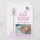 Anuncios de nacimiento con marco de fotografía de nido de pájaro rosa y blanco para niña.