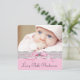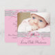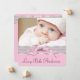 Adorables anuncios de nacimiento de niña con encaje rosa, lazo, perlas y foto. Este anuncio de nacimiento rosa y negro se personaliza fácilmente con su foto y detalles agregando su foto, detalles del evento, estilo de fuente, tamaño y color de la fuente y redacción.