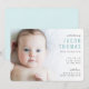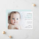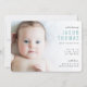 Bienvenido tu nuevo paquete de alegría al mundo con estos dulces, simples y modernos anuncios de nacimiento en un hermoso color azul bebé. Esta invitación muestra tu foto favorita con un gradiente blanco y una tipografía limpia y moderna. Todos los textos y colores de esta invitación son personalizables usando el botón azul "Personalizar".