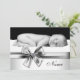 Elegante anuncio de nacimiento de fotos de bebés en blanco y negro. Este anuncio de nacimiento de bebé con fotos en blanco y negro se personaliza fácilmente añadiendo tu foto y detalles, estilo de fuente, tamaño de fuente y color, y texto.