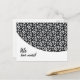 En esta tarjeta de anuncio personalizable, moderna y de moda, un patrón retro en blanco y negro está parcialmente cubierto por una forma blanca cóncava, curva y asimétrica. Encima de esa superposición está tu mensaje. Mi marcador de posición dice "¡Nos hemos mudado!" en una fuente bonita representada en dos tamaños diferentes. /// En el reverso, haz saber a tu tribu sobre tu cambio de dirección. Todos los campos de texto -delantero y trasero- se pueden editar de varias maneras: cambiar las palabras, el color, la fuente, el tamaño... ¡incluso la posición! Haz que esta tarjeta postal de cambio de dirección sea tan única y personalizada como lo es tu nueva y emocionante casa.
