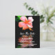 Hermoso anuncio de boda tropical Save the Date con una fotografía de una flor de hibisco de color melocotón que se refleja en el agua oscura. Personalice el texto según sus necesidades. Una excelente manera de notificar a todos con anticipación su próxima boda en el destino.