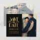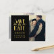 ¡Felicitaciones por tu compromiso! ¿Planear un Boda temático Art Deco Elegance? Elija esta hermosa foto en negro y oro guardar las postales de fecha para anunciar su fecha de boda. Elke Clarke © Faux gold Relieve metalizado look