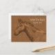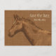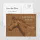 Un caballo esbozado a mano, en un fondo de burpón ilustrado, acentúa esta postal de Salvar la Fecha para el boda rústico.
