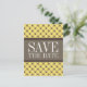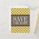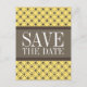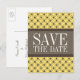 Fancy Lattice de moda y de moda Salven la postal de fecha con un círculo elegante y un patrón de rombo sobre un vibrante fondo amarillo de zócalo de limón con un amplio borde marrón de dos tonos. Esta elegante tarjeta postal ahorra la fecha es perfecta para anunciar a su boda moderno. Fácil de personalizar, simplemente agregue los detalles de su boda en los campos de texto proporcionados. Haga clic en "Personalizar" para encontrar más opciones de personalización.