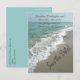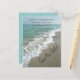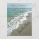 "Salva la fecha" escrita en la arena. La temática del océano azul acuático con las olas estrellándose en la orilla. También está disponible con otras escrituras, incluyendo Gracias, Guardar la fecha, RSVP y Estás invitado.