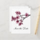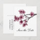 Modernas y modernas Flores de cerezo Sencillas Salven la Postcard Date con bonitas ramas de flores de cerezo rosa. Esta elegante tarjeta postal japonesa, que ahorra la fecha, es perfecta para anunciar un sencillo y sofisticado boda de primavera o verano. Fácil de personalizar, simplemente agregue los detalles de su boda en los campos de texto proporcionados. Haga clic en "Personalizar" para encontrar más opciones de personalización.