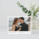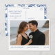 ¿Buscando una manera elegante de anunciar a su boda? Esta tarjeta postal de personalizable permite cargar tu foto de compromiso favorita mientras mantiene el diseño pulido y moderno. Con una elegante colocación de tipo que se adapta a la ropa más oscura y a los ambientes de la playa, el reverso muestra un atemporal patrón azul chinoiserie para un acabado clásico. Perfecto para los bodas costeros, las parejas modernas o todo aquel que desee un toque refinado y personal.