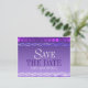 Las divertidas y modernas luces de baile y disco inspiradas en el diseño en tonos morados y azules de boda o invitación de compromiso ahorran las postales de dátiles. Boda asequible y tarjetas de compromiso sin comprometer el estilo y el diseño.