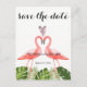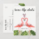 Invitación de postales boda tropical. Plantilla personalizada. Postal de flamencos rosados. Encuentre artículos coincidentes en nuestra tienda o contáctenos.