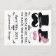 En el diseño gráfico destacan un bigote negro, bigote rosado, sombrero de top negro, sombrero de top rosado que incluye una flor y plumas. También incluye un collar de perlas. El texto dice: "Te Arrojamos Para Guardar La Fecha". Ideal para un bash de bigote, boda, aniversario, ensayo, recaudación de fondos, ducha o cualquier evento especial.
