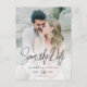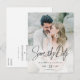 Esta sencilla y elegante foto moderna permite guardar la tarjeta postal del boda de fecha con un elegante texto negro en la parte delantera con un mensaje de moda "Save the Date" sobre sus nombres, fecha y configuración regional del boda. En la parte posterior, puede que decida borrar las líneas de la información del destinatario si prefiere una apariencia más minimalista, etc. El color de texto predeterminado en la parte posterior es negro. En la parte de atrás elegimos un orden atípico para la información, poniendo el texto 'POR FAVOR GUARDE LA FECHA' después del texto 'POR EL BODA DE', que le da un camino menos recorrido encanto. Puede modificarlo cambiando el texto de cada uno de estos campos de texto e introduciendo manualmente la pieza que desea colocar en el orden en que desea mostrarla. Ponemos el fondo en la parte posterior como transparente para que el color del papel sirva simplemente como tono base. Puede cambiar esto fácilmente seleccionando uno de los colores básicos de las herramientas de edición, introduciendo un número de color si tiene un color específico en mente que encontró en su investigación, o mirando la herramienta del espectro de colores y eligiendo algo a la vista. Hemos hecho que mate sea la opción de papel predeterminada, pero puede cambiarla a -semi-brillante si prefiere esa apariencia. Esperamos que disfrutes experimentando con esta plantilla de postales de fecha limpia y contemporánea y la hagas única tuya con las herramientas de diseño intuitivo, tu foto favorita y tu inspiración. Tenemos una selección de otros minimalistas modernos guardar las tarjetas de fecha en varios formatos incluyendo una versión de este diseño con texto en blanco, así que por favor, ¡eche un vistazo!
