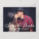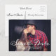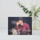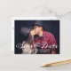 Envíe una tarjeta postal de fecha elegante con su propia fotografía. Personalizar el texto en ambos lados con detalles. Presenta una fuente de script moderna.