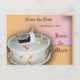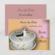 Una tarta boda graciosa con una novia arrastrando al novio por el collar es la decoración de esta bonita tarjeta Save the Date. Totalmente personalizable.