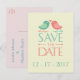 Dígale con orgullo a sus amigos y familiares que están comprometidos con estas divertidas postales de Save the Date boda. Las postales presentan un par de pájaros personalizados rosados, rojos y azules/verdes sobre ramas diminutas del corazón. resaltados con un fondo blanco nítido La parte posterior de la postal puede ser totalmente personalizada con sus nombres, fecha boda y ubicación. Las postales para guardar la foto de fecha son una alternativa económica a las tarjetas de tamaño completo cuando desea anunciar sus planes de boda. Para divertirse e inspirarse a diario, por favor visite nuestra invitación Save The Date Boda que puede disfrutar... Etiquetas: Guardar la fecha, guardar la fecha invitación del boda, boda rosa, boda rojo, boda azul, boda verde, aves amorosas, pájaros amorosos, pájaros bodas, personalizado, aves personalizados, aves, bodas・, tarjetas・, guardar los anuncios de la fecha, guardar el post fecha